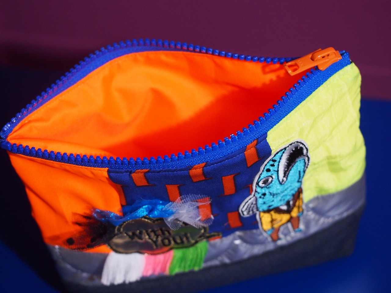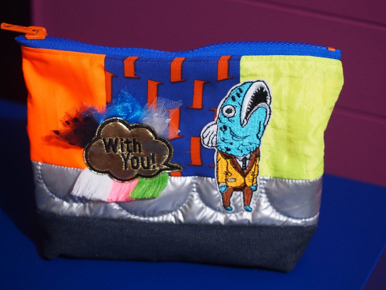 アップリケや生地を感性の赴くままに組み合わせた一点物ポーチ。
